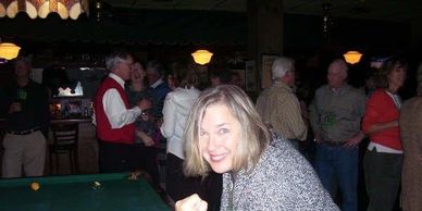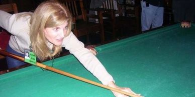 Friday night was the best! Good friends, music, food and pool. Kitty Wilkinson is ready for the next opponent.
