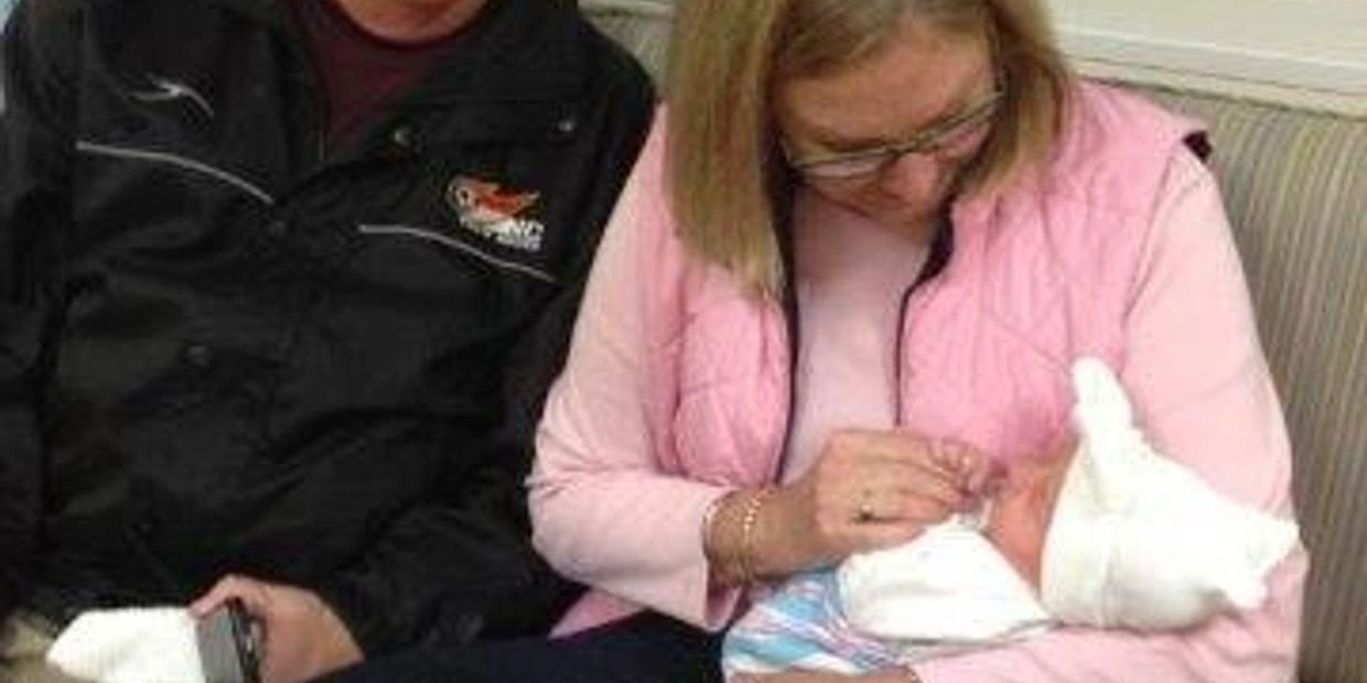 Jeff and Martha Thomas back in January with their then newborn granddaughter Reyna...