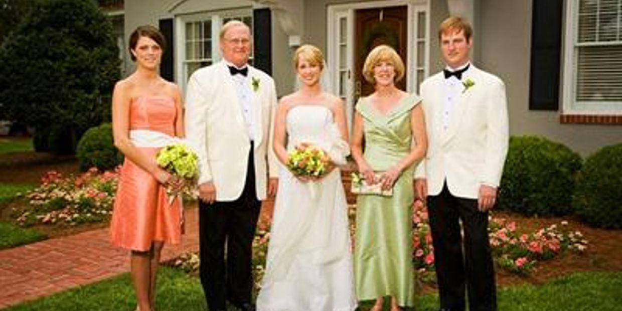 L/R is daughter Martha (24), Kathy's husband David, bride Mary Ellen (32), Kathy, and David Jr.(26).
